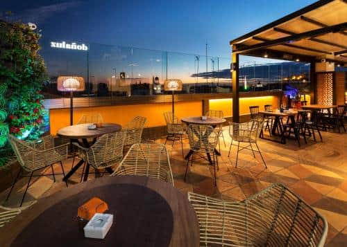 Dining features two standout venues, Solstice for Mediterranean cuisine and Celestia for avant-garde Spanish dishes, with signature dishes by Michelin-starred chefs, rooftop dining, gourmet tasting menus with wine pairings, breakfast options, and room service.